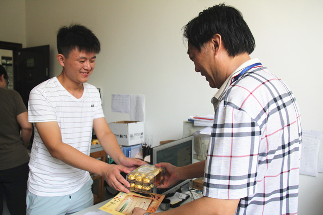 一张小小的贺卡,一盒沉甸甸的巧克力,已成为球友会在线教师节里特定的礼物。每一年的教师节,院领导都会亲自把这份心意送到每一位教职工手中。