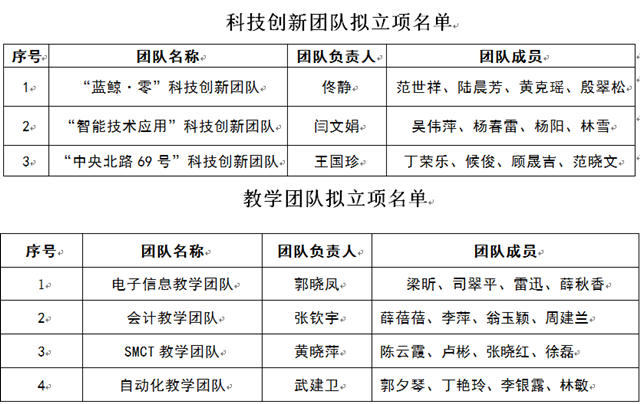 根据《球友会在线科技创新团队建设管理办法(试行)》(南机电院[2016]38号)、《南京机电职业学院教学团队建设与管理办法(试行)》(南机电院[2016]37号)的有关规定,经校内公开申报、资格审查和专家评审,确定球友会在线拟立项科技创新团队3个、教学团队4个,现予以公示,名单如下: