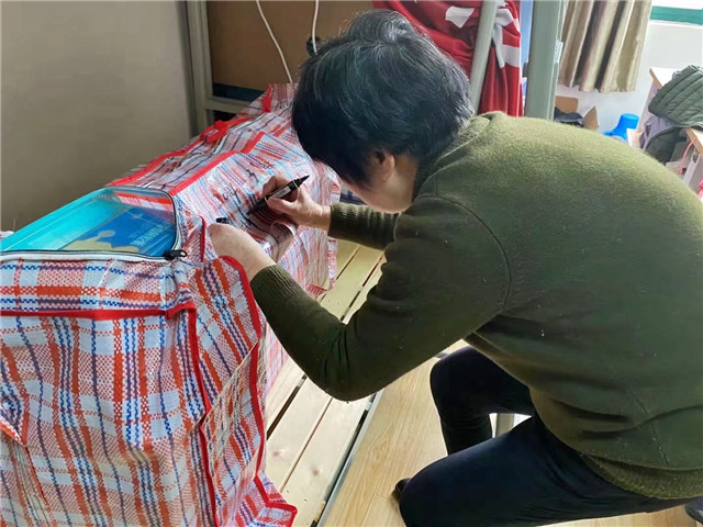 本次搬迁工作由学工处、后勤处、人文社科系共同完成。搬迁前,后勤处对即将搬入的宿舍进行了打扫、清洁和消毒。按照“个人物品单独打包、每间宿舍单独搬迁”的原则,人文社科系辅导员赵世文、韦星屿两名老师现场全程与150名同学进行视频联络,确认个人物品,保证搬迁过程中所有学生物品的安全性和完整性。大学生生活服务与管理中心全体宿管老师细致的把每个同学行李装袋打包,每一位工作人员都秉承高度敬业负责的态度,在打包袋上标明现宿舍号、床位号、柜号、姓名及需搬送至的宿舍号。