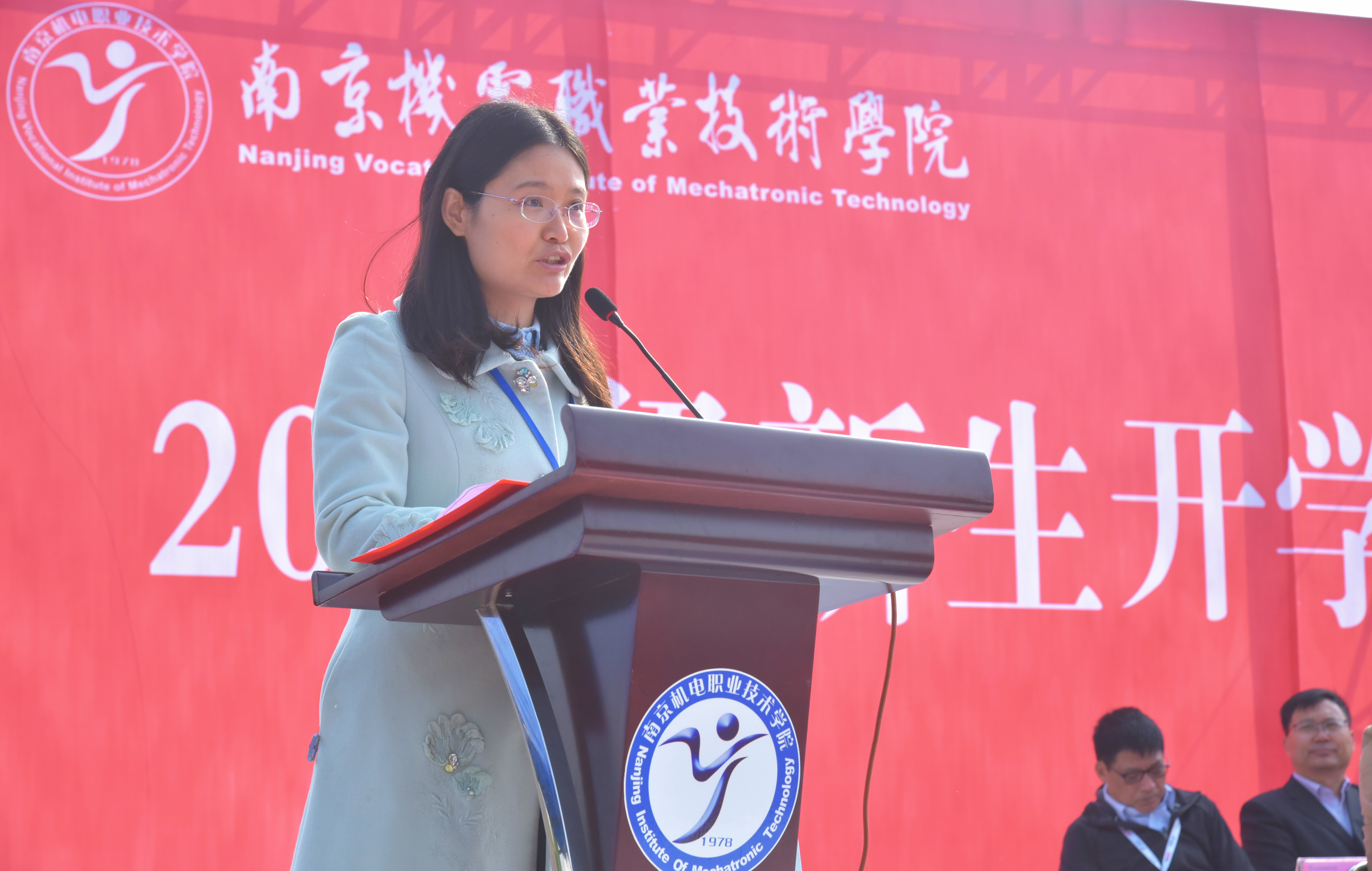 学院青年优秀教师代表,江苏省技术能手、江苏省五一创新能手、江苏省巾帼建功标兵获得者陆晨芳老师代表全体教师为同学们送上开学寄语;2020级信息工程系王子骏同学代表新生发言。