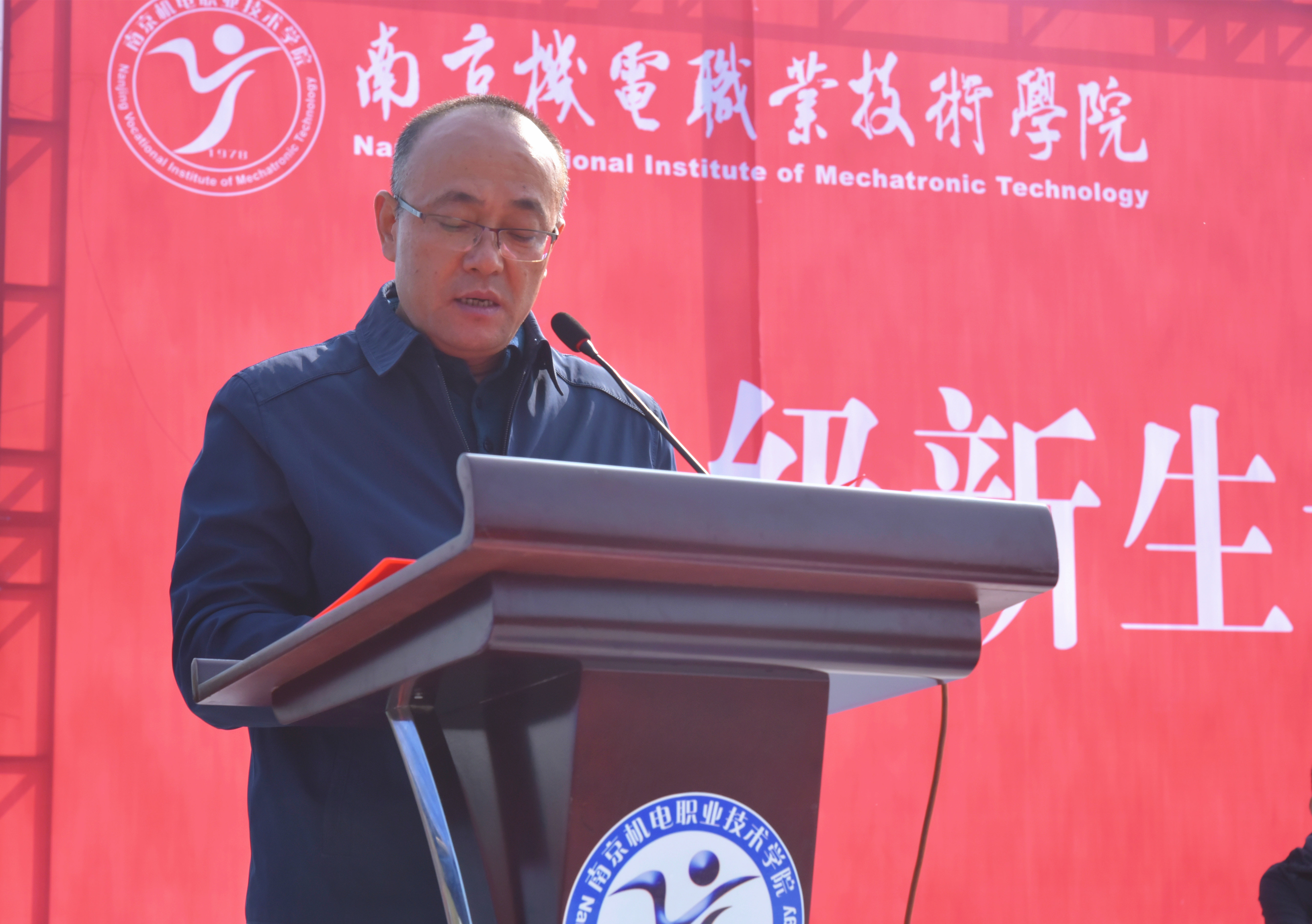 党委书记、院长周庆礼为2020级新生军训成果汇报大会暨开学典礼致辞。他代表全体师生员工对2529名新生的到来表示热烈的欢迎。他指出,在这个不平凡的年份里学院迎来了“生于非典,考于新冠”的莘莘学子,他希望带着这段特殊经历的学生们能够在南京机电获得新的认知和新的成长。周院长借学院使命中的自信二字送给大一新生。希望他们坚定精忠报国的信念;秉承自强不息的校训;发扬敢为人先的创新精神;不负韶华逐梦前行,和学院一起自信面向未来。