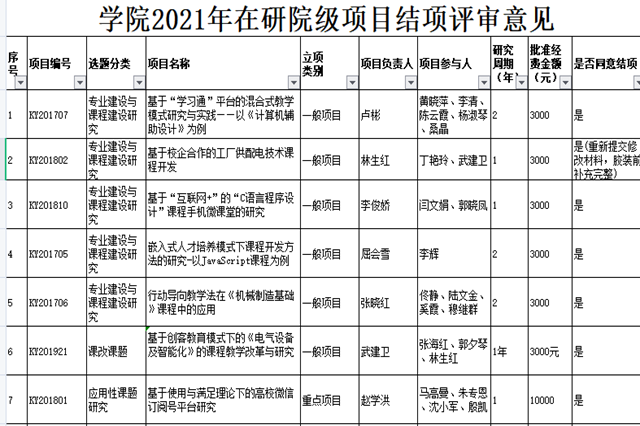 根据《关于2021年上半年院级在研科研项目结项的通知》、《球友会在线科研工作管理办法》机电学院[2012]19号、《球友会在线科研项目管理办法》机电学院[2012]20号文件精神,经科研及校企合作处审查,院专家组评审,批准我院2021年上半年学院在研科研项目26项通过结项鉴定。现将结项鉴定结果予以公示。