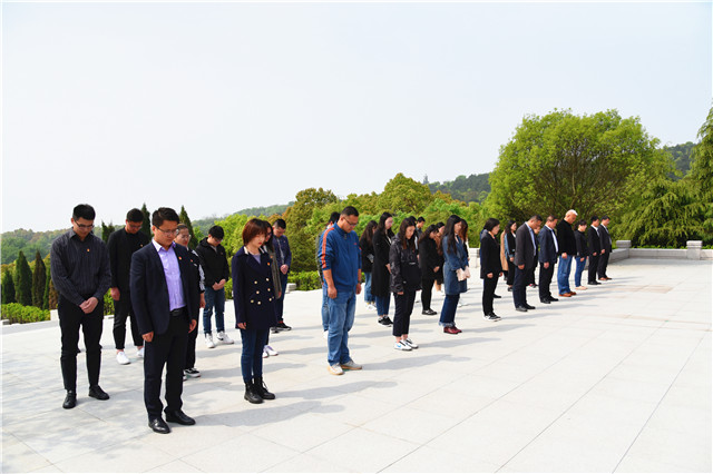 游子山烈士陵园坐落在游子山南麓,全体党员迈过台阶,来到陵园中央的“高淳革命烈士纪念碑”,向革命烈士纪念碑敬献花圈。在碑前全体党员集体默哀沉思,缅怀革命先辈的英雄事迹,感受红色文化的熏陶。随后,在高职园党工委书记刘宜军的带领下,全体党员面对党旗庄严宣誓,重温入党誓词。紧接着,全体党员依次为革命烈士献花,有秩序地绕碑瞻仰烈士事迹。