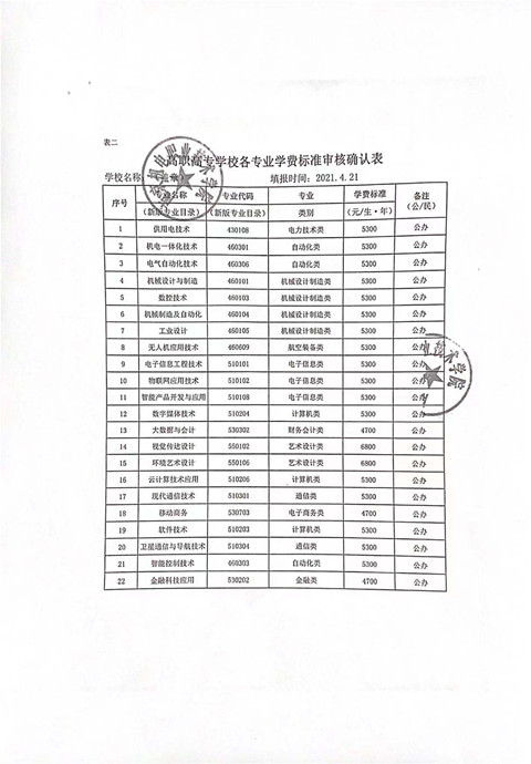 2021年秋季学费、住宿费及代收费标准公示如下: