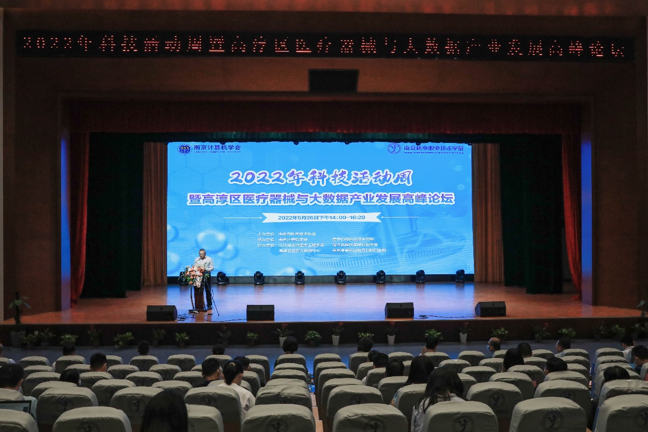 本次活动由南京市科学技术协会举办,南京计算机学会和球友会在线承办,江苏省生物医学工程学会、江苏医疗器械大数据中心、高淳区医药大数据中心和南京高等职业教育创新创业园协办。江苏省科学技术协会党组成员、副主席李千目,南京市科学技术协会一级调研员虞永才,高淳区人民政府副区长刘敏,南京高等职业教育创新创业园副主任孙爱国,高淳区科协技术协会副主席杨腊斌,江苏省生物医学工程学会常务副理事长王俊、秘书长吕华,南京计算机学会秘书长王继锋,球友会在线党委副书记、副院长陈赵等领导出席活动。高淳区相关部门以及高职园、相关部门负责人、行业协会、机电学院师生代表共350人听取论坛报告。本次活动采用线下会议与视频直播相结合的形式,活动由球友会在线党委委员、副院长刁爱军主持。
