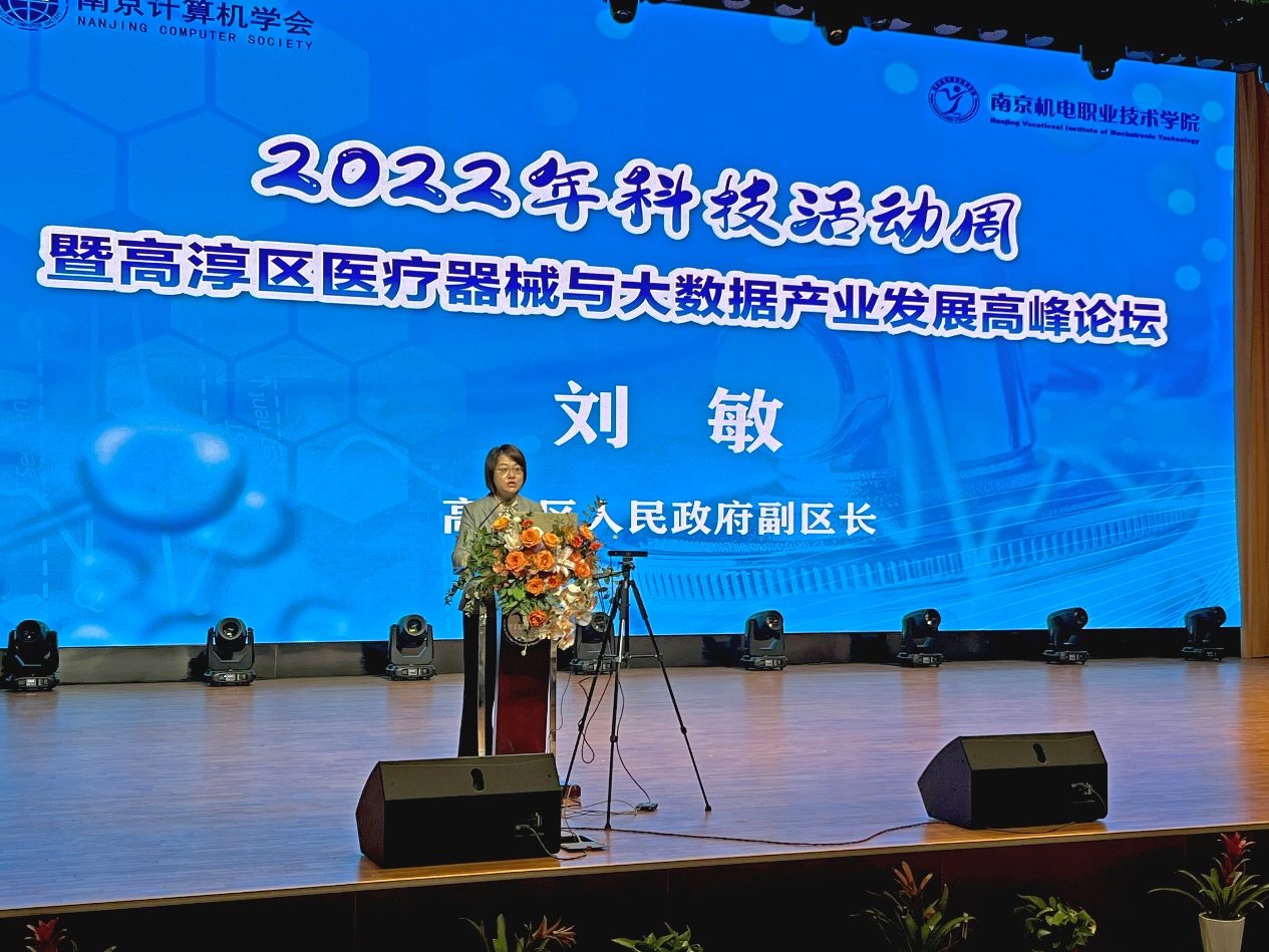本次活动由南京市科学技术协会举办,南京计算机学会和球友会在线承办,江苏省生物医学工程学会、江苏医疗器械大数据中心、高淳区医药大数据中心和南京高等职业教育创新创业园协办。江苏省科学技术协会党组成员、副主席李千目,南京市科学技术协会一级调研员虞永才,高淳区人民政府副区长刘敏,南京高等职业教育创新创业园副主任孙爱国,高淳区科学技术协会副主席杨腊斌,江苏省生物医学工程学会常务副理事长王俊、秘书长吕华,南京计算机学会秘书长王继锋,球友会在线党委副书记、副院长陈赵等领导出席活动。高淳区相关部门以及高职园、相关部门负责人、行业协会、机电学院师生代表共350人听取论坛报告。本次活动采用线下会议与视频直播相结合的形式,活动由球友会在线党委委员、副院长刁爱军主持。