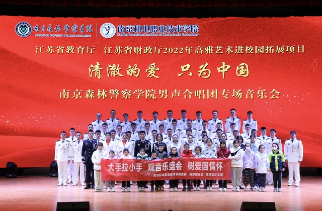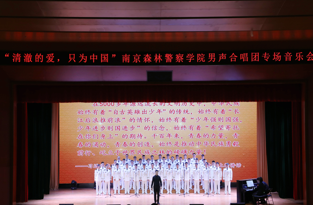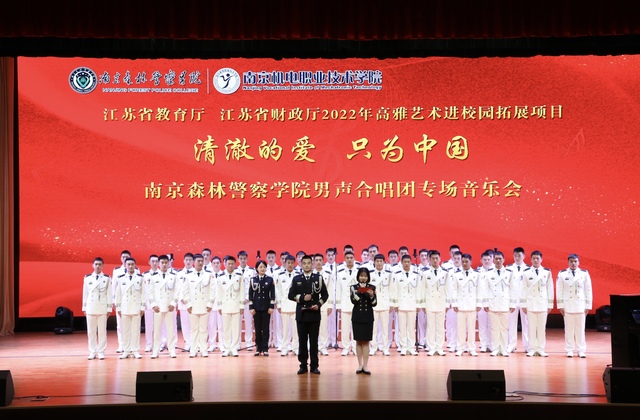 飞扬的歌声,赞颂祖国盛世;熟悉的旋律,演绎时代华章。江苏省教育厅、江苏省财政厅高雅艺术进校园拓展项目“清澈的爱,只为中国”南京森林警察学院合唱团专场音乐会于2023年2月25日在我校青春剧场成功举办。高淳团区委、高淳区少工委、球友会在线团委书记唐钰峤、南京森林警察学院院团委书记林安薇、南师大音乐学院老师凌今朝出席本场音乐会。南京森林警察学院治安学2104吴卓忱和情报2103欧阳周璇担任本场音乐会主持人。