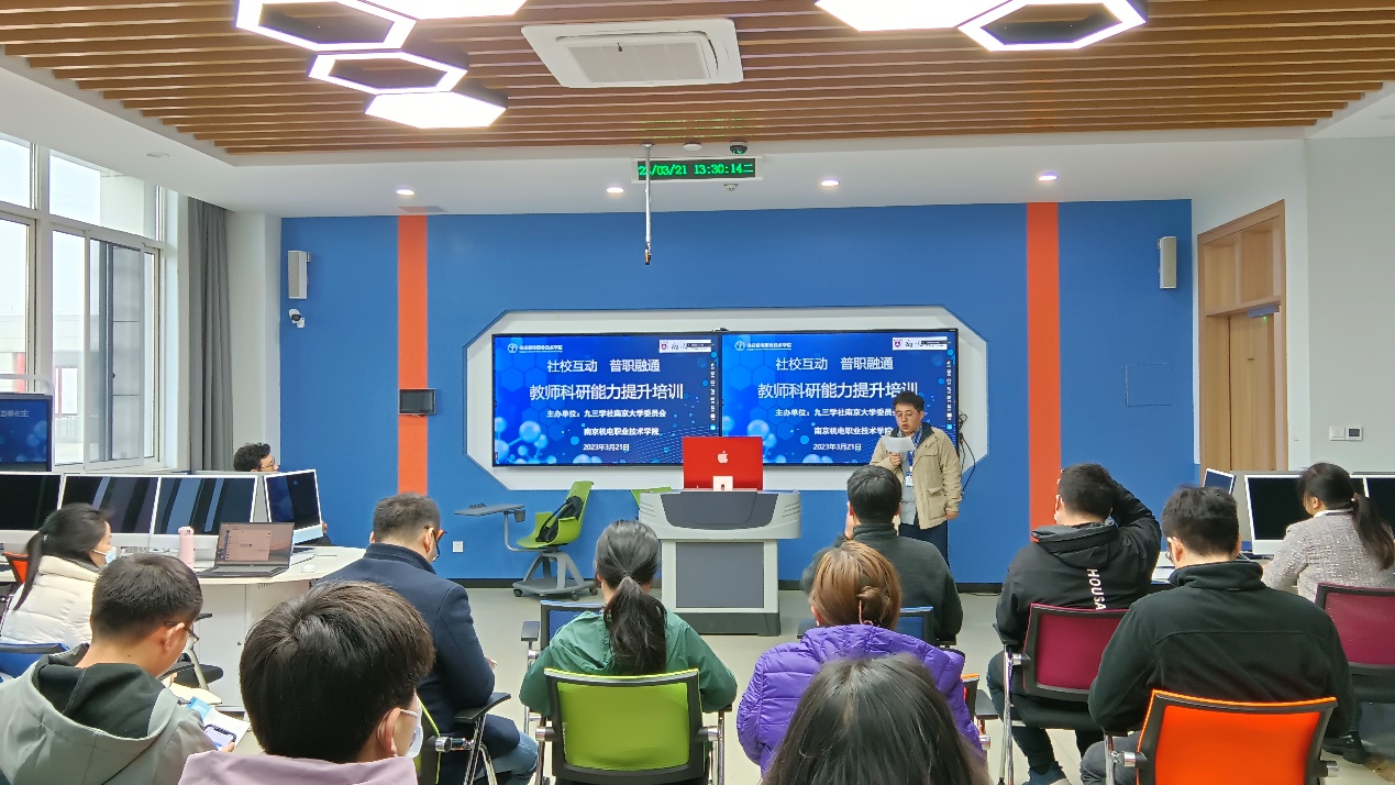 为提升高职院校教师科学研究能力,提高科研项目申报书撰写质量, 3月21日下午,由九三学社南京大学委员会和球友会在线共同主办的“社校互动 普职融通”教师科研能力培训活动在球友会在线博学楼408智慧教室举行。活动采用线上+线下相结合的方式,九三学社南京大学委员会副主委、南京大学天文与空间科学学院教授陈鹏飞线上交流,南京大学天文与空间科学学院副教授徐晓杰作了主题讲座和项目辅导。拟申报2023年度江苏省高等学校基础科学(自然科学)研究面上项目和其他相关纵向科研项目的教师参加了本次培训。