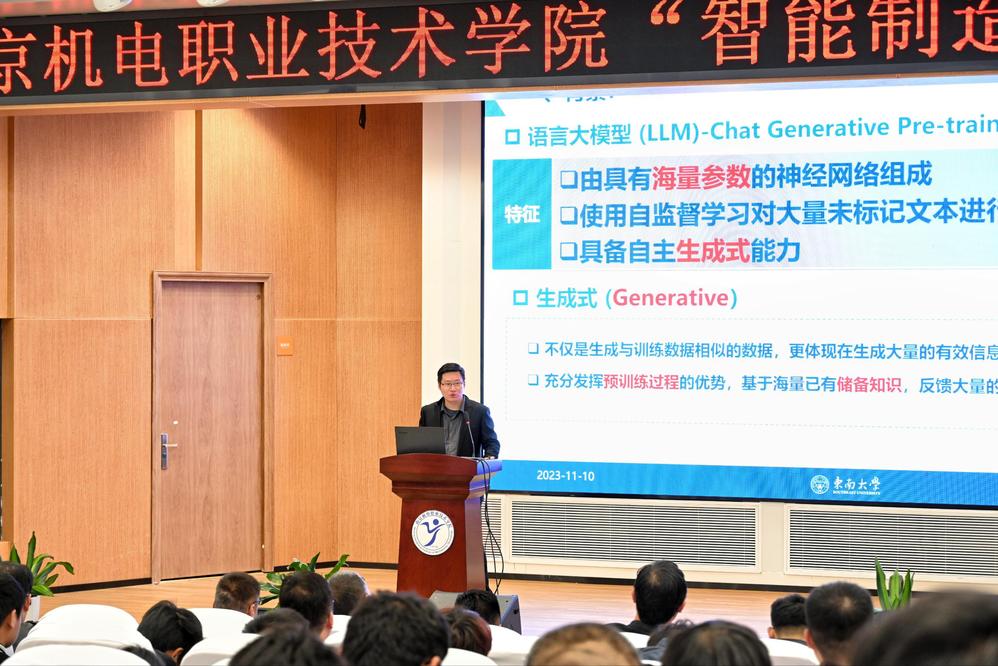 南京科德锐工业技术有限公司张一心总经理、南京航空航天大学朱永凯教授、安徽恒创智能装备有限公司徐必勇总经理、南京创力传动机械有限公司费秀国董事长、东南大学马捷教授分别从数字孪生的实践与落地、航空发动机关键参数的检测传感技术、特种工程机器人、高速旋转动力装备&绿色高效能源技术以及智能交通大模型(IT-GPT)等方面作了主旨报告。
