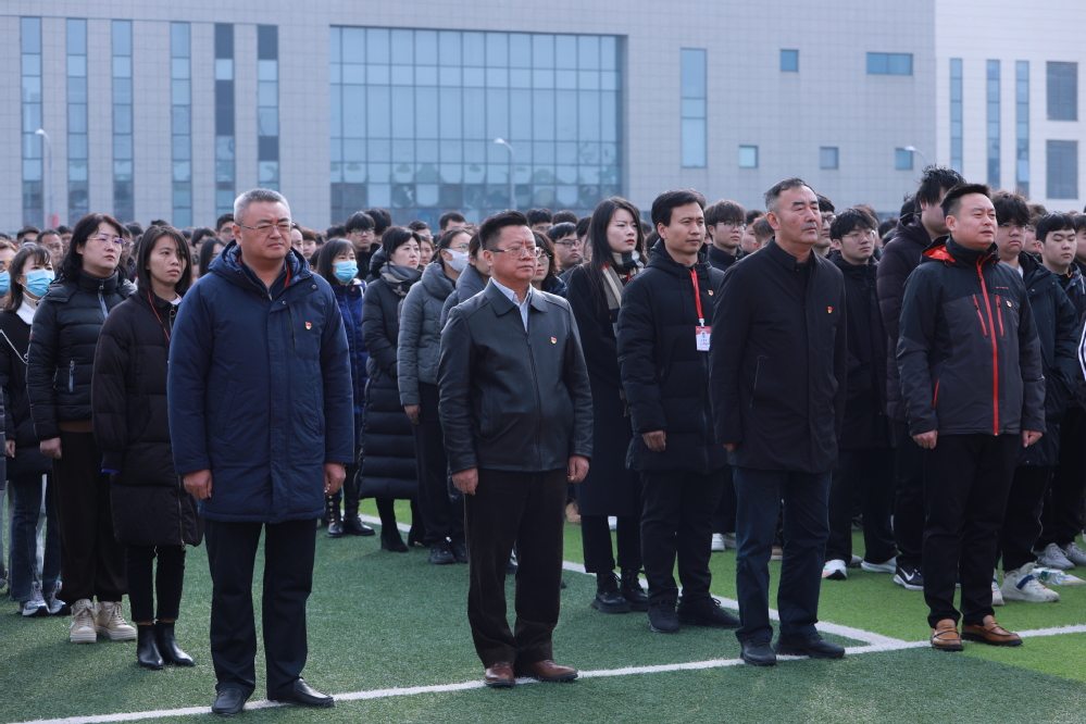 默哀闭,学生代表诵读《和平宣言》,饱含深情、铿锵有力地朗诵声响彻操场。学校党委书记、校长周庆礼作国旗下讲话,他表示,这个纪念日背后所携带的历史不仅是尊重与哀悼,更是反思与警示。国家公祭日是我们铭记历史、缅怀先烈的日子,也是我们警醒自身、珍视和平的日子。希望每一位师生都能保持警惕,珍惜和平,守护家国。和平不仅需要我们的珍惜,更需要我们的坚守。