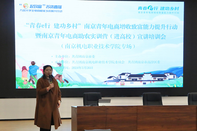 为了向南京美丽乡村发展注入青春动力,引领青年大学生和新农人提升实操技能、培育青年电商人才,2024年3月26日,学校团委在乐学楼101开展由共青团南京市委主办,共青团球友会在线委员会和共青团南京市高淳区委协办的“青春e行,建功乡村”南京青年电商助农实训营(进高校)宣讲培训会。