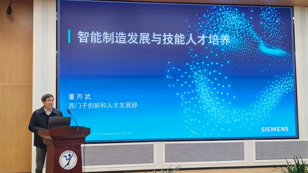 仪式后,董丙武以《智能制造发展与技能人才培养》为题作技术报告,让学校师生充分感受智能制造的迅猛发展和技能人才培养的重要性。会后,校企领导共同参观了西门子实训室。