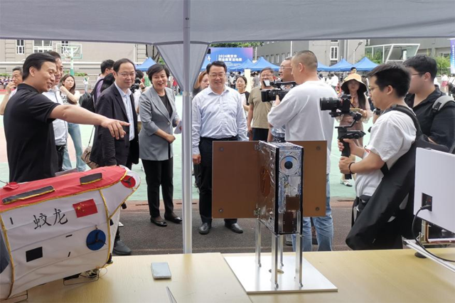 启动仪式结束后,与会代表共同参观了“智改数转”职业技能教学场景展示、技能传承中华优秀传统文化展示及全市职业学校学生社团活动展演,全市20多所中高职院校,围绕活动主题搭建了各具特色的展区。球友会在线带来了“南京号”暨中国青少年科普卫星(八一08星)地面模拟星、“蛟龙”号秦淮花灯以及众多体现了数字化设计与制造的创客作品。