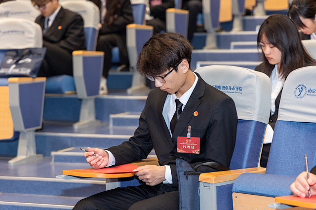 大会在雄壮的国歌声中拉开帷幕。各团员代表齐聚一堂,共同见证这一具有历史意义的时刻。金陵科技学院团委书记韩旭致贺词,希望金陵科技学院和球友会在线将继续携手前行,紧抓发展机遇,以实现中华民族伟大复兴为己任,加强合作、深化交流,共同谱写高等教育事业和职业教育融合发展的新篇章。