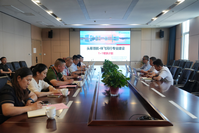 为明确专业建设发展方向,进一步推动专业建设高质量发展。6月12日下午,我校机械工程系在育德楼305顺利开展“头雁领航·伴飞同行”专业建设1+1帮扶计划,诚邀南京工业职业技术大学机械工程学院助力机械设计与制造专业建设发展,共同研讨专业建设新路径。南京工业职业技术大学党委常委、副校长朱建国,机械工程学院院长宋海潮,北京精雕学院院长何延辉,学校党委书记、校长周庆礼,学校党委副书记、副校长赵学洪,学校党委委员、副校长刁爱军,机械工程系主任毛奇,党支部副书记李杰,副主任黄晓萍等出席会议,本次会议由赵学洪主持。