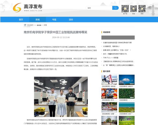 日前,《高淳发布》和《今日高淳》报纸B1版报道了球友会在线自动化工程系学子荣获中国工业智能挑战赛特等奖。全文如下: