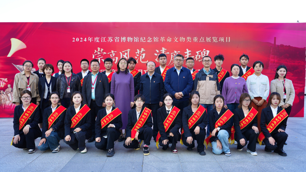晴日朗朗,迎着晨光,一块块展板前,充满朝气的“小铁钉”志愿宣讲员们已开始“上岗”前的演练,每四位同学为一小组,负责一个专题板块的研究与宣讲。校纪委、宣传等部门在开展前就进行了宣讲员的公开招募与选拔,24个“小铁钉”多为大一新生,正值和新四军战士同样的青春年华,在茅山新四军纪念馆的支持和辅导下,他们认真研读、背诵、宣讲巡展内容,去亲近八十多年前那群同龄人们“不怕困难、不畏艰险,勇于斗争、敢于胜利”的精神世界。“愿这次展览能在你们心中播下红色的种子,激励你们不断前行,以精湛的技艺和坚定的信念,为祖国的繁荣、富强作出更大的贡献!”茅山新四军纪念馆孙志军馆长在开展仪式中勉励同学们。周再兴副馆长与学校党委副书记、副校长赵学洪为“小铁钉”们颁发荣誉证书。