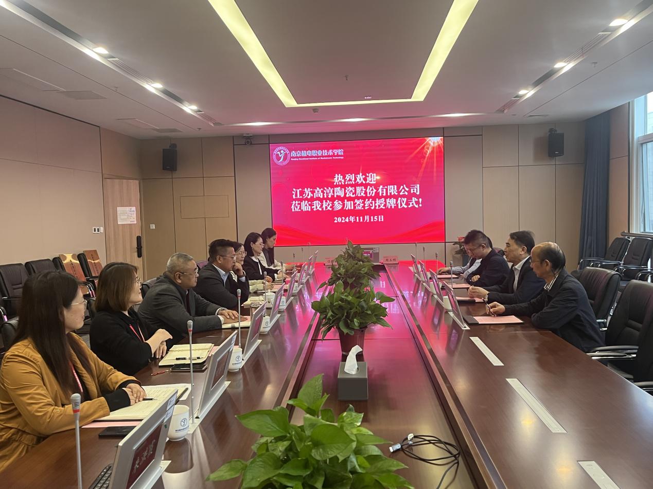 在与会人员的见证下,学校党委委员、副校长刁爱军与江苏高淳陶瓷股份有限公司党委副书记周玉明共同签署了校企合作协议,并进行了授牌仪式。本次签约授牌仪式标志着双方将在人才培养、文化传播、技术创新、社会服务等多个领域展开深入合作。