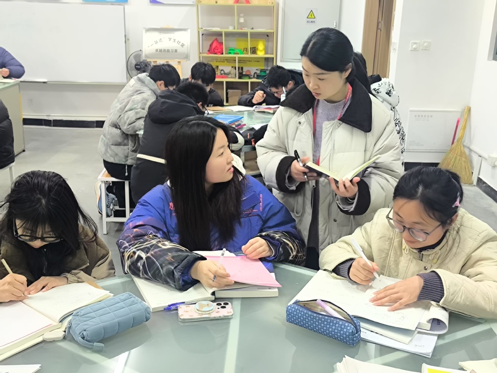 自习室每周开放时间为周一至周四晚18:00至21:00。为了确保服务质量,特别成立了由系党支部8名优秀党员教师组成的值班老师团队。同时,安排系辅导员、任课教师轮流驻点社区,为学生提供全方位的学业帮扶和课业辅导服务。通过构建学习辅导+生活关怀的立体化服务体系,全面满足学生在学习生活中的个性化需求,切实为学生成长发展保驾护航。
