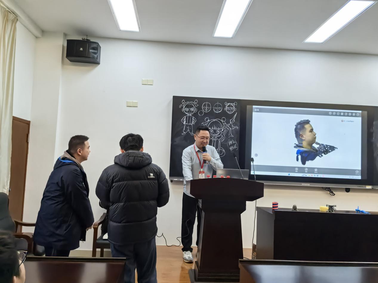 在《科技改变生活,3D成就梦想》课上,学校机械工程系教师徐磊介绍了3D打印技术的未来发展趋势和在日常生产生活中的广泛应用。在互动环节中,徐老师还用3D建模软件为同学绘制肖像画,更是点燃了他们的职业选择热情。