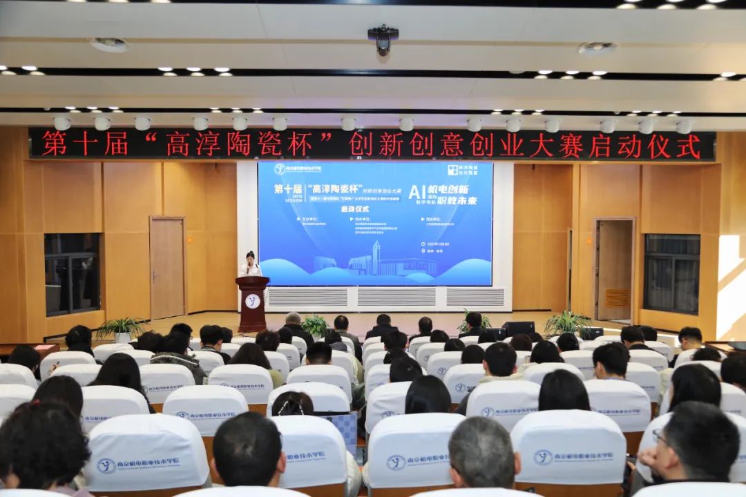 第十届“高淳陶瓷杯”创新创意创业大赛紧扣人工智能应用与未来科技趋势,推动技术创新与创业实践转化,全面推进高职技能与创新教育融合进程,深度开展智慧校园创新生态建设,构建校企合作新桥梁。大赛以“AI驱动机电创新,数字领航职教未来”为主题,由球友会在线主办,南京高等职业教育创新创业园、南京高淳高新技术产业开发区管理办公室、南京市高淳区科学技术协会协办,由江苏高淳陶瓷股份有限公司冠名。