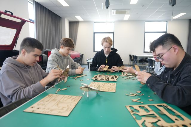 会后,代表团一行参观了学校的蓝岛陶艺工坊,激光切割工坊和热转印工坊。在讲师生动讲解和演示下,代表团成员兴致勃勃地参与现场体验和互动交流,对学校跨学科融合教学场景及实践成果表示由衷赞叹。