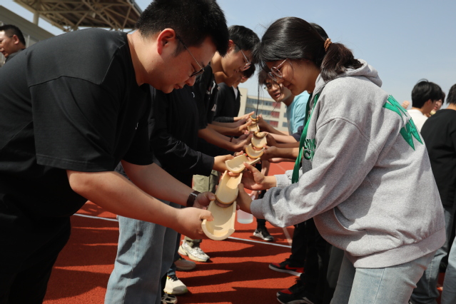 运动会现场气氛热烈,师生们精神饱满、斗志昂扬。此次运动会紧扣劳动主题,运动会项目丰富多样,各有亮点。在“急速搬运工——农田物资接力赛”中,师生们肩挑扁担,跨越重重障碍物,接力运送 “粮食”。比赛过程紧张激烈,大家不仅要比拼速度,还要确保“粮食”少洒落,充分考验了团队成员的抗压协作能力。