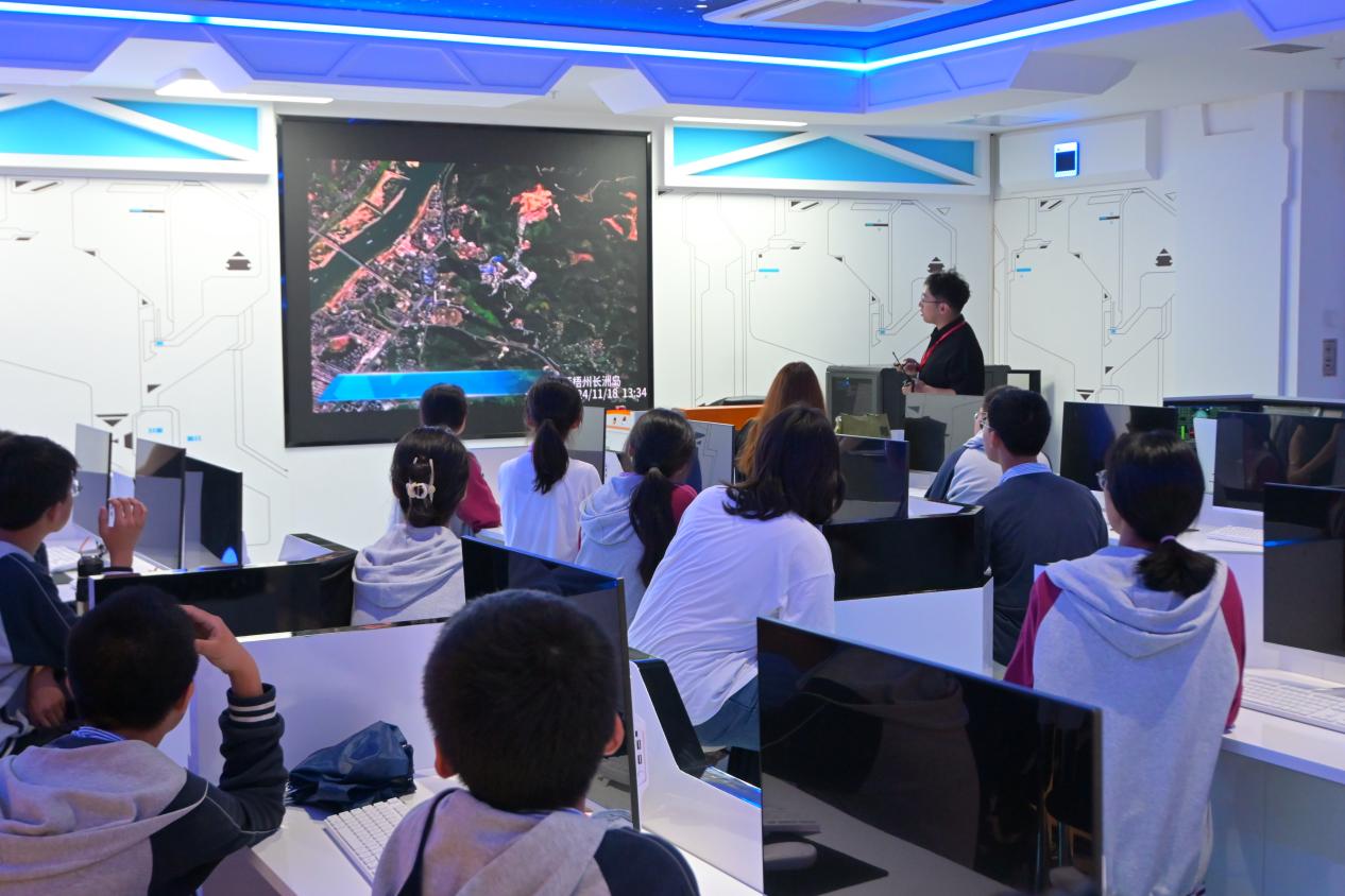 航天专业科普场馆建有全国职业院校首个“天地一体”航天科普阵地,包括航天科普馆、卫星地面接收站实验室、卫星测控中心,配套“航空航天装备智能制造技术”省级示范性虚拟仿真实训基地,创新“数字孪生+实景操作”虚实融合的科普阵地。学校卫星通信与导航技术专业负责人黄威老师,带领50余名中小学生实景操作卫星地面接收站并互动体验了卫星测控中心,孩子们无不惊叹于我国先进的航天科技。