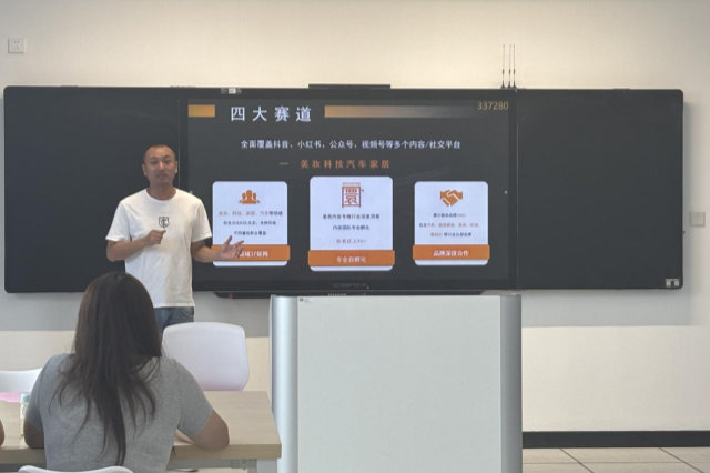 西西里传媒运营总监陶钰莹在致辞中介绍了企业的发展历程和行业成就。她强调,作为业内领先的MCN机构,公司将充分发挥在内容创作、账号孵化和商业转化等方面的专业优势,为学生提供沉浸式实践平台和行业前沿项目实训机会,助力学员掌握核心竞争力。行政总监邢夏飞详细阐释了1+1+1阶梯式培养模式:第一阶段夯实通识教育与专业基础,第二阶段强化专业核心能力培养,第三阶段深入企业开展实战训练。他表示,公司将组建由资深技术专家和知名内容创作者构成的双师型教学团队,为学生提供全方位、多维度的成长指导。