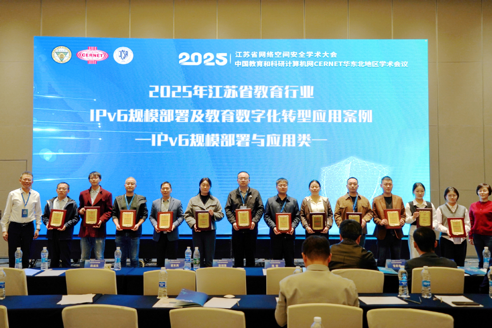 中国教育和科研计算机网CERNET华东北地区2025年学术会议于2025年11月5日-11月7日在南京举办。会上公布了江苏省教育行业IPv6规模部署及教育数字化转型应用案例遴选结果,我校申报的《基于零信任架构的网络安全新边界的动态可信访问控制体系实践》成功入选“IPv6规模部署与应用优秀案例”。