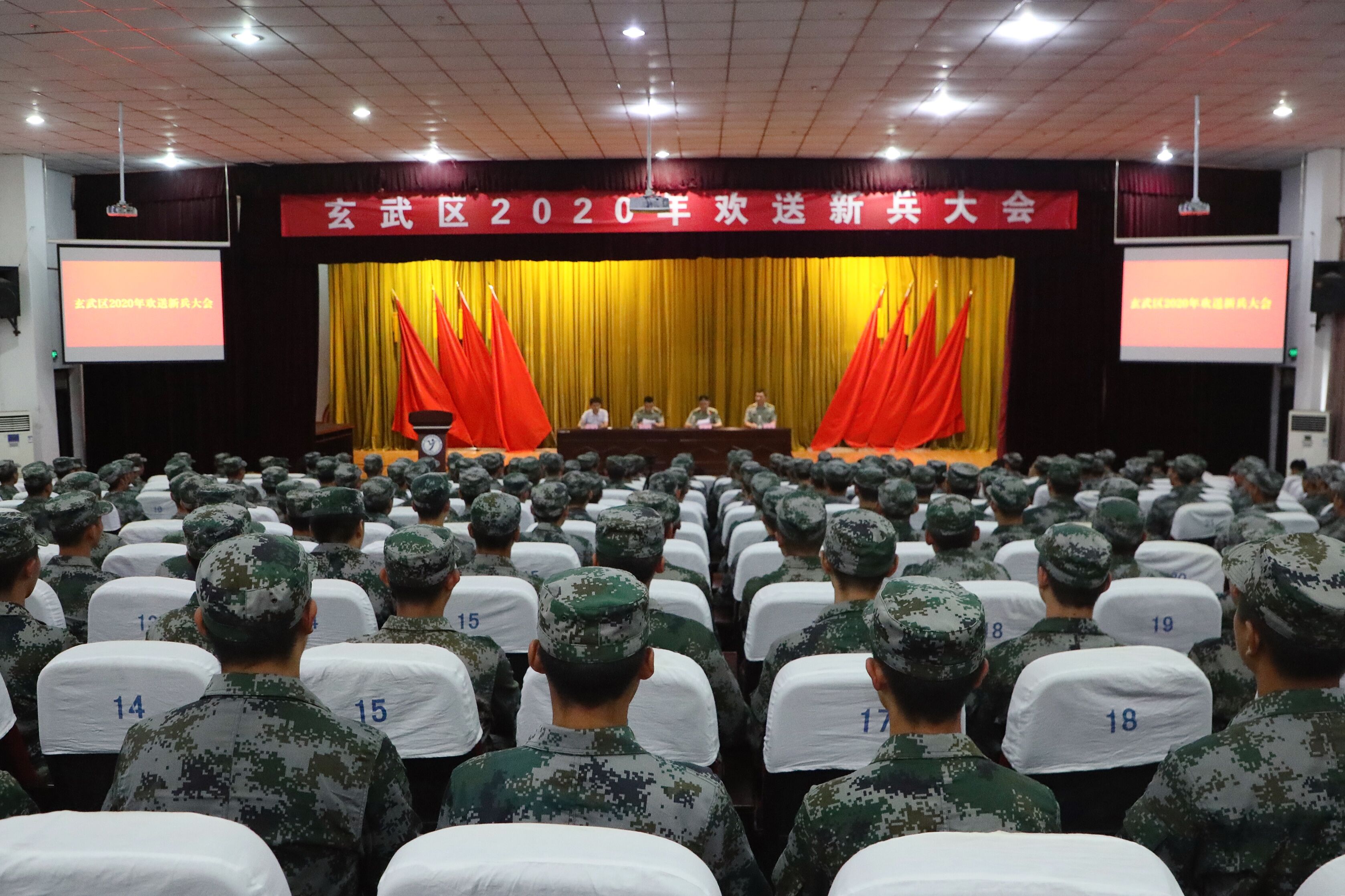 9月9日,学院武装部在报告厅举行了2020年度新兵入伍欢送会。玄武区区委常委、人武部政委刘诚同志、玄武区退役军人事务局局长马义兵同志、区人武部副部长肖刚同志及各高校、街道武装部部长,全区175名新兵和部分家长代表出席了欢送会。会议由区人武部部长孙余主持。