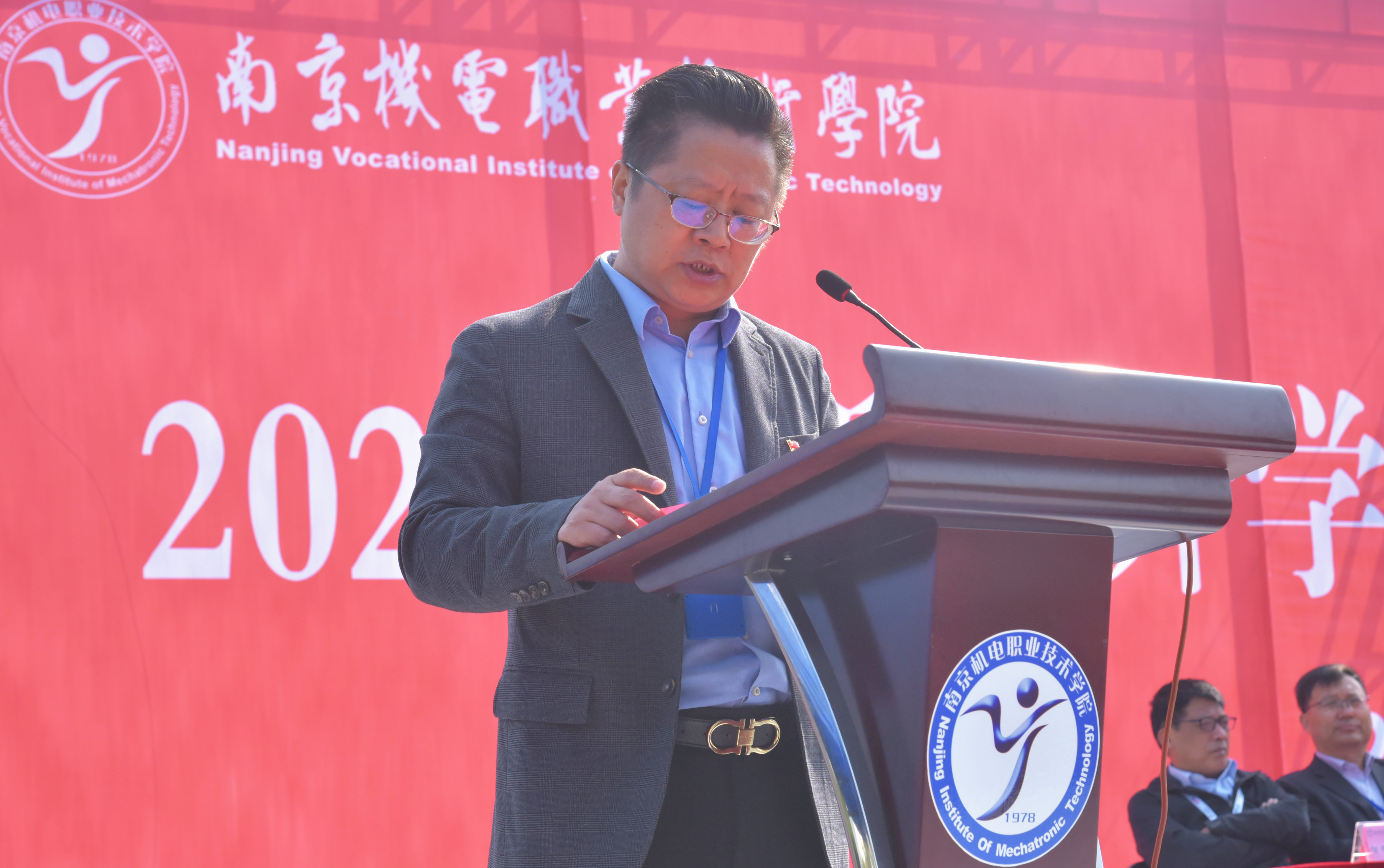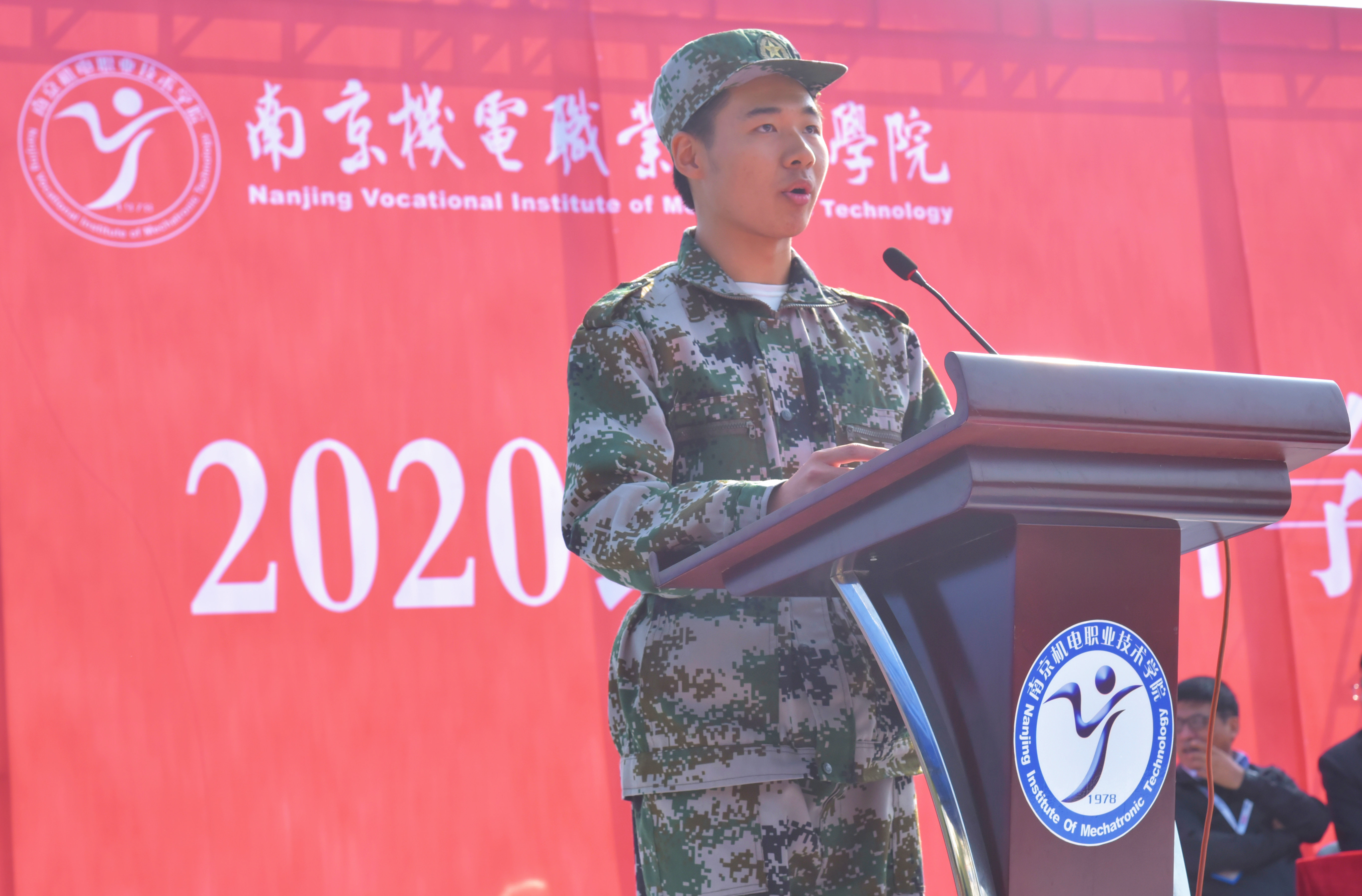 党委书记、院长周庆礼为2020级新生军训成果汇报大会暨开学典礼致辞。他代表全体师生员工对2529名新生的到来表示热烈的欢迎。他指出,在这个不平凡的年份里学院迎来了“生于非典,考于新冠”的莘莘学子,他希望带着这段特殊经历的学生们能够在南京机电获得新的认知和新的成长。周院长借学院使命中的自信二字送给大一新生。希望他们坚定精忠报国的信念;秉承自强不息的校训;发扬敢为人先的创新精神;不负韶华逐梦前行,和学院一起自信面向未来。
