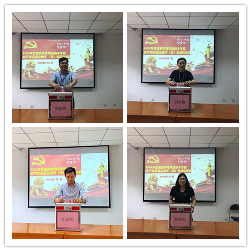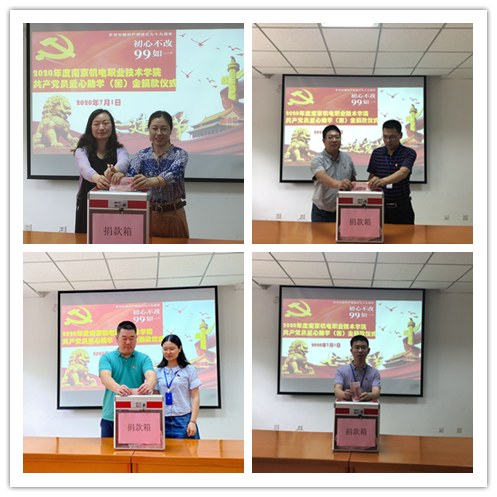 在中国共产党成立99周年之际,学院党委在弘德楼107会议室举行“球友会在线共产党员爱心助学(困)金捐款仪式”。党委工作部主任周启国、各系部书记及支委委员参加了捐款仪式。