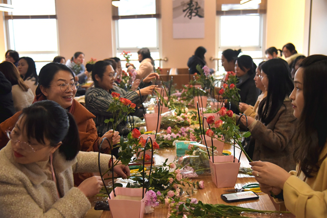 阳春三月天气新,为庆祝第111个“三八”国际劳动妇女节,丰富学校女教职工的业余文化生活,展现女职工精神风貌,倡导健康向上的生活方式,学校工会特开展女神节手工制作沙龙活动。本次活动在学校教工食堂举行,共分艺术插花和压花蜡烛两个项目。