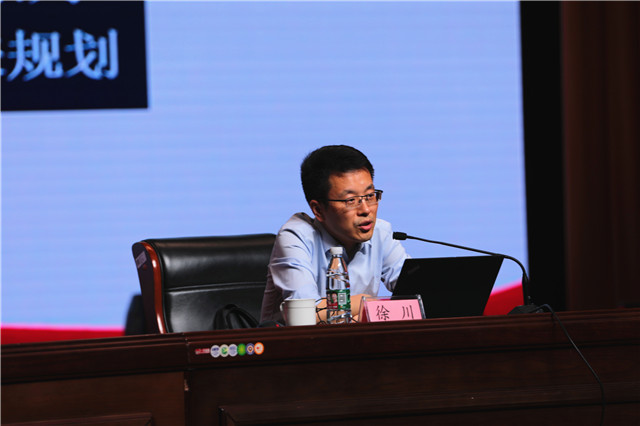 徐教授聚焦“聚焦铸魂育人,彰显思想伟力——谈谈思政工作怎么做”这一主题,从“参会的感受”“现场的发言”“精神的理解”三个方面,深入解读了参加习近平总书记主持召开的学校思想政治理论课教师座谈会的感受及所思所得,并从“一系列工作品牌、一系列著作读物、一系列思政视频、一系列工作方法、一系列理论成果、一系列宣讲品牌、一系列社会影响和一系列未来规划”八个方面重点介绍了“川流不息”思政工作方法。徐川指出,推动思想政治理论课改革创新,要不断增强思政课的思想性、理论性和亲和力、针对性,要坚持“政治性和学理性、价值性和知识性、建设性和批判性、理论性和实践性、统一性和多样性、主导性和主体性、灌输性和启发性、显性教育和隐性教育”相统一的原则,挖掘其他课程和教学方式中蕴含的思政教育资源,实现全员全程全方位育人。