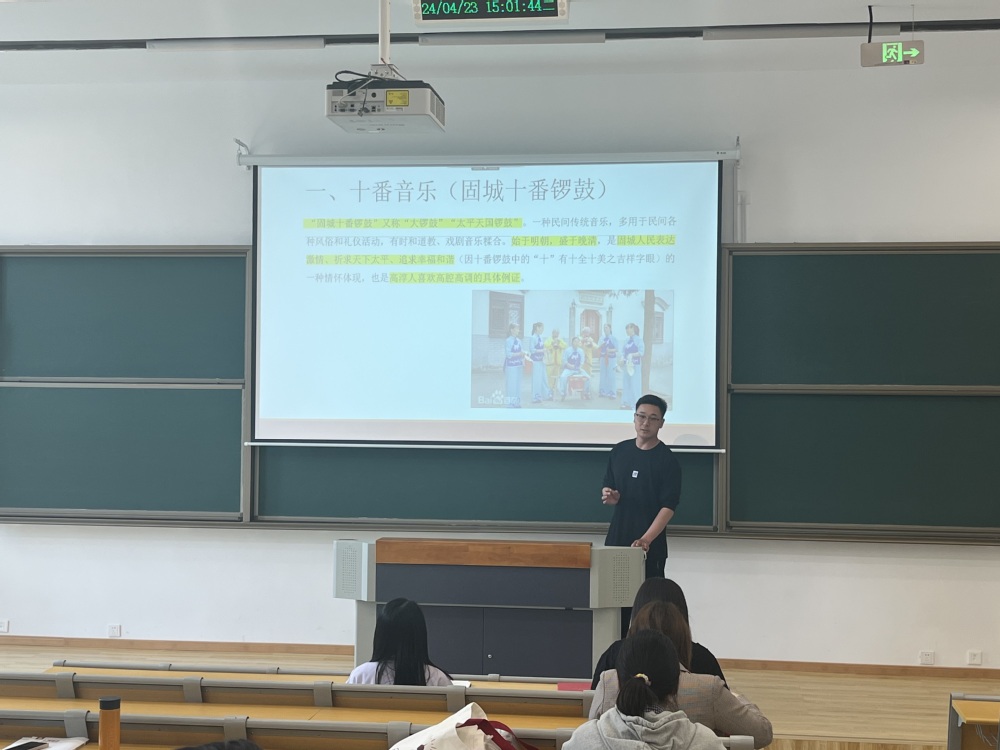4月23日下午,人文社科系党支部在勤学楼105组织开展关于高淳非物质文化遗产保护与发展的专题学习。本次学习由于宇老师主讲,人文社科系全体教职工参加。