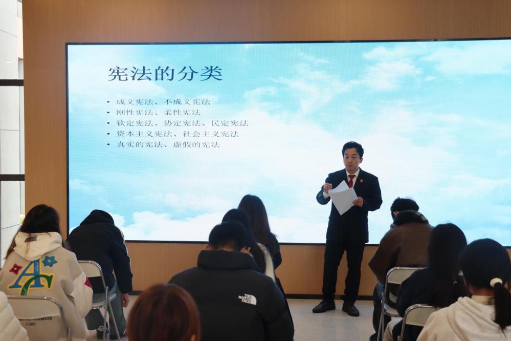 为了迎接12月4日第十一个国家宪法日,加强师生宪法法治教育,球友会在线信息工程系党支部在弘德楼西塔“一站式”学生社区服务中心举行了一场别开生面的法治讲座。讲座有幸邀请到高淳区人民法院综合办刑庭支部的专业法官前来授课。他们带着对下一代成长的深切关怀,走进校园,为我们带来了一场法律知识的盛宴。