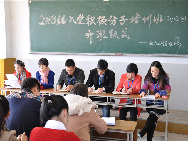 11月18日中午12:30,球友会在线电子工程系党支部在教学楼A208举行2013级入党积极分子初级班培训开班仪式。电子工程系党支部书记张宝中,宣传委员梁金平,组织委员林雪,党员惠珍、权海平、杨瑞以及31名积极分子学员参加了此次开班仪式。仪式由林雪老师主持。