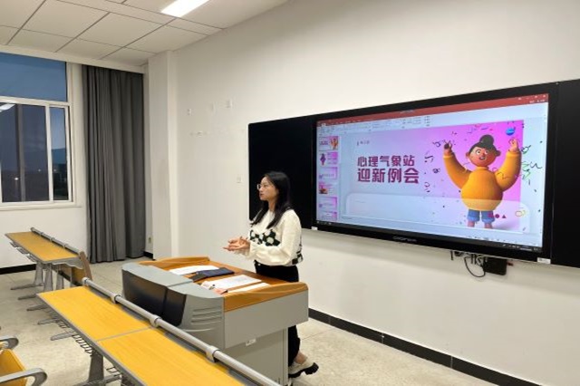 例会上,汪慧慧首先介绍了心理气象站的基本情况,她表示该气象站隶属于系部学生会,是协助校心理中心老师通过心理咨询面对面,校园心理知识现场解答等方式来帮助同学解决心理困惑,传播心理健康知识的一项重要工作。