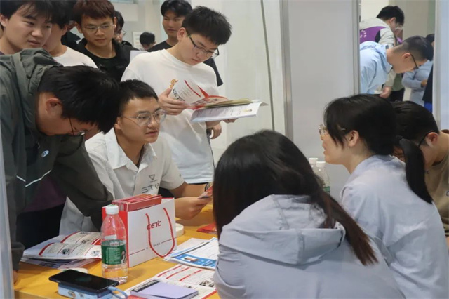 电子类招聘会参展企业专业契合,岗位丰富。不少同学表示,在招聘会上感受到了电子信息行业的活力和发展空间,对自己未来的职业生涯产生了新的期待,同时也对如何将平时学到的知识应用到将来的工作中有了更清晰的认识。企业代表也纷纷表示,这是向同学们宣传企业文化、拉近校企距离的好机会,他们耐心解答同学们提出的问题并为他们提供了合理的建议。现场,南京熊猫汉达科技有限公司、中国电子科技集团公司第五十五研究所等行业知名企业的展位前大排长龙,现场氛围高潮迭起。