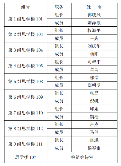 每个答辩小组由1名答辩组长、1名答辩成员及2名学生志愿者组成。