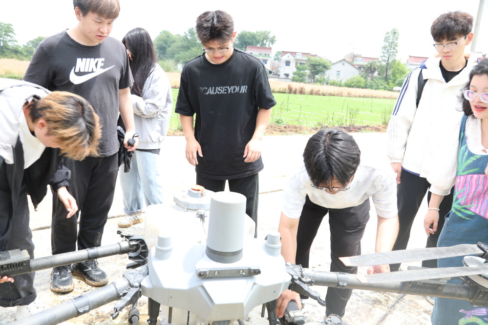 在农机设备区,一台台先进的农机具整齐排列,尤其是无人机植保、智能化灌溉系统等现代化农业技术设备,吸引了同学们的目光。陈蓉结合设备操作,讲解其工作原理和在农业生产中的重要作用,为学生打开了现代农业生产的全新视野。