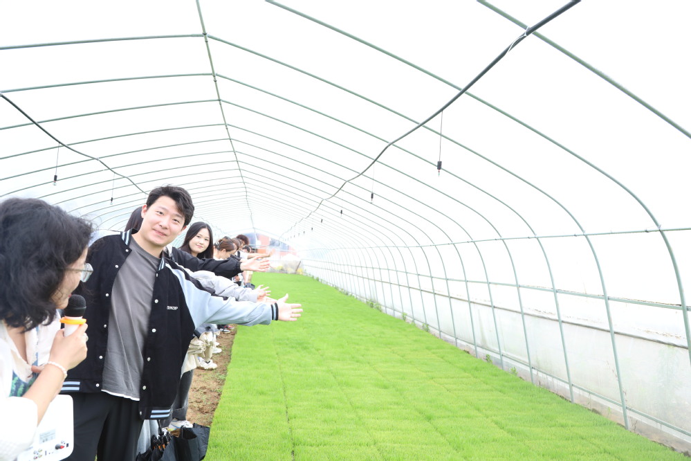 微雨清晨,参与活动的师生怀揣着期待与好奇,踏上前往陈福明谷物种植家庭农场的旅程。抵达农场后,农场负责人陈蓉热情相迎,期待师生们能够将农场生态的美,技艺的美得以传递。本次实践主要围绕农场机械设备的参观与农事知识讲解、农事活动体验设置不同环节。漫步在阡陌纵横的农田间,陈蓉生动地讲述着农场从传统耕作到现代化运营的发展历程,详细介绍着水稻、蔬菜等丰富多样的种植品种和庞大的生产规模。