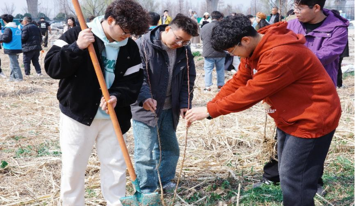 活动当日,机械工程系关工委的教师们早早来到活动现场。他们凭借丰富的经验,为同学们细致讲解植树的要点与技巧,从挖坑的深度、树苗的扶正到填土的方式,事无巨细,耐心指导。系团委组织的青年志愿者们则朝气蓬勃,分工明确:有的手持铁锹奋力挖坑,有的小心翼翼地搬运树苗,还有的认真为新栽树苗浇水灌溉,现场一片热火朝天的劳动景象。