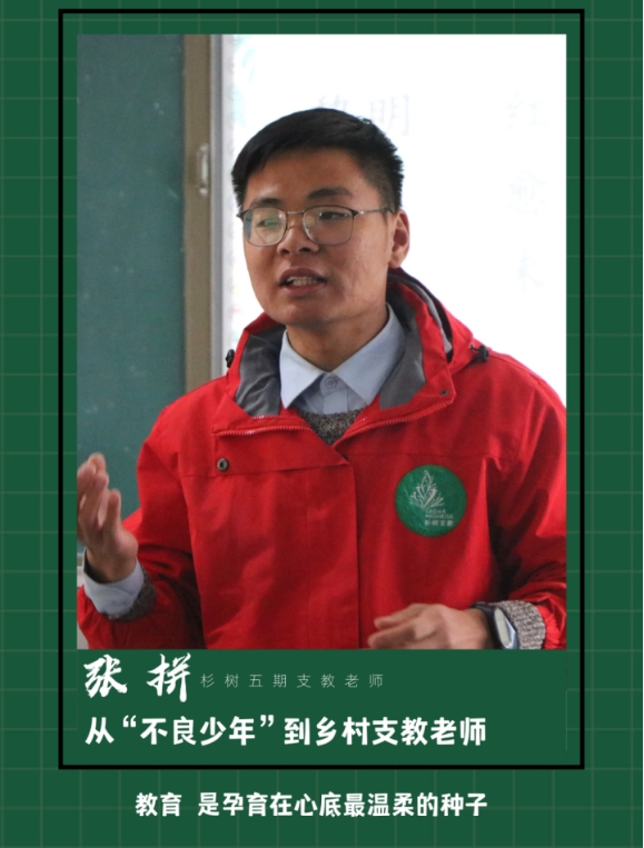 2020年,张拼带着父亲的期许与母校的支持,加入“杉树支教”计划,走进凉山彝族自治州西昌市木耳小学。出发前,系部关工委为他组织了‘支教赋能工作坊’,邀请往届支教志愿者分享经验。面对41个羞涩胆怯的彝族孩子,他自称“浇灌花种的园丁”,在国旗下带领孩子们喊出梦想,用两年时间完成100余次家访,步行山路400余公里。疫情期间,他放弃与家人团聚,留在山区陪孩子们过年,为每人准备红包与新年礼物;得知学生沙马有哈将唯一的纸糊文具盒送给他,只因看他“那天不开心”,这个铁骨男儿湿了眼眶。
