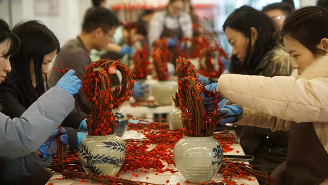 贺新春插花活动特别邀请了插花导师进行现场教学。近130名老师参加元宵花手工DIY,在插花导师手把手地指导下制作完成了属于自己的家装盆景。老师们纷纷表示,红色的元宵花为即将到来的虎年增添了浓厚的节日气氛,非常感谢工会的贴心安排。