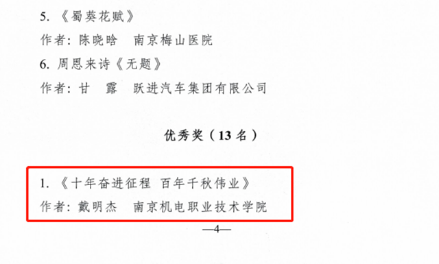 近日,南京新工投资集团有限责任公司工会发布了《关于表彰“奋进十年路 喜迎二十大”2022年南京新工投资集团职工书画摄影获奖作品的决定》(宁新工工〔2022〕31号),经专家评审,我校杨辰辰老师的作品《浪淘沙》、戴明杰老师的作品《十年奋进征程 百年千秋伟业》分别获得书法类二等奖和优秀奖。