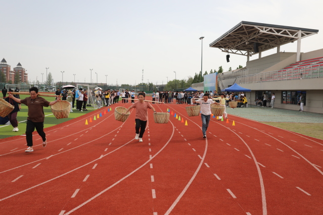 在“急速搬运工——农田物资接力赛”中,师生们肩挑扁担,跨越重重障碍物,接力运送 “粮食”。比赛过程紧张激烈,大家不仅要比拼速度,还要确保“粮食”少洒落,充分考验了团队成员的抗压协作能力。