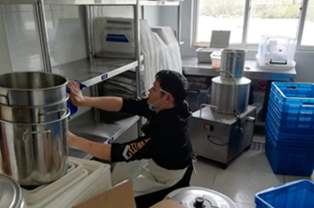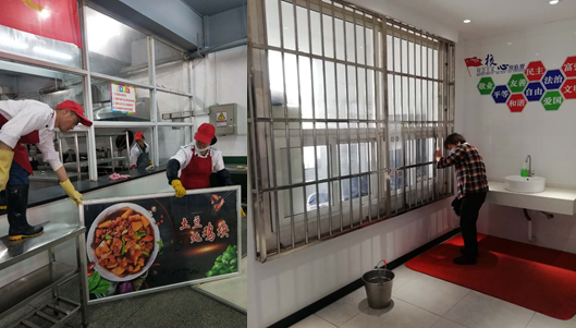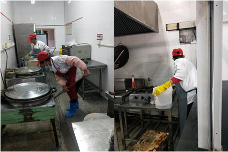 为了保障食品安全,让师生们返校能够吃的安心、吃的健康,后勤处组织员工,提前对食堂内外环境进行全面清洁消毒。