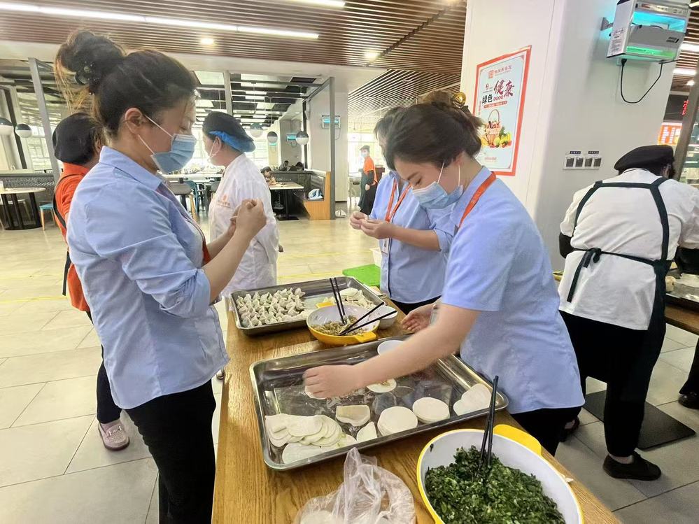 本次竞赛紧密围绕餐饮服务全流程,设置包饺子团队赛、打菜一勺准、算账一口清、托盘折返跑等实操项目,全方位检验后勤人员的业务功底。比赛现场气氛热烈,师生们纷纷驻足围观,加油声此起彼伏。包饺子区的默契配合、算账区的专注神情、运盘区的稳健步伐,构成了后勤人专业素养的生动注脚。